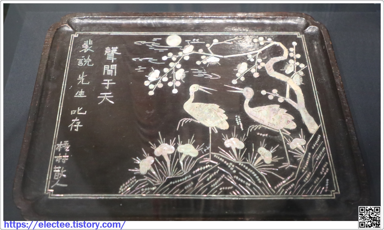 나전칠 달 매화 학무늬(배설) 사각반 錄語潭月梅捕文長城括盤