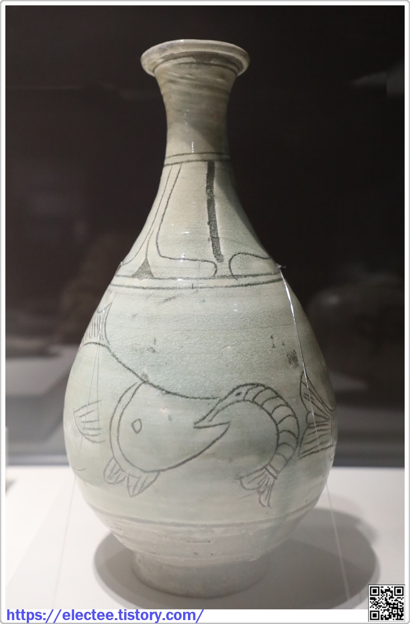 분청사기 음각 물고기 무늬 병 粉青沙器陰刻魚文瓶