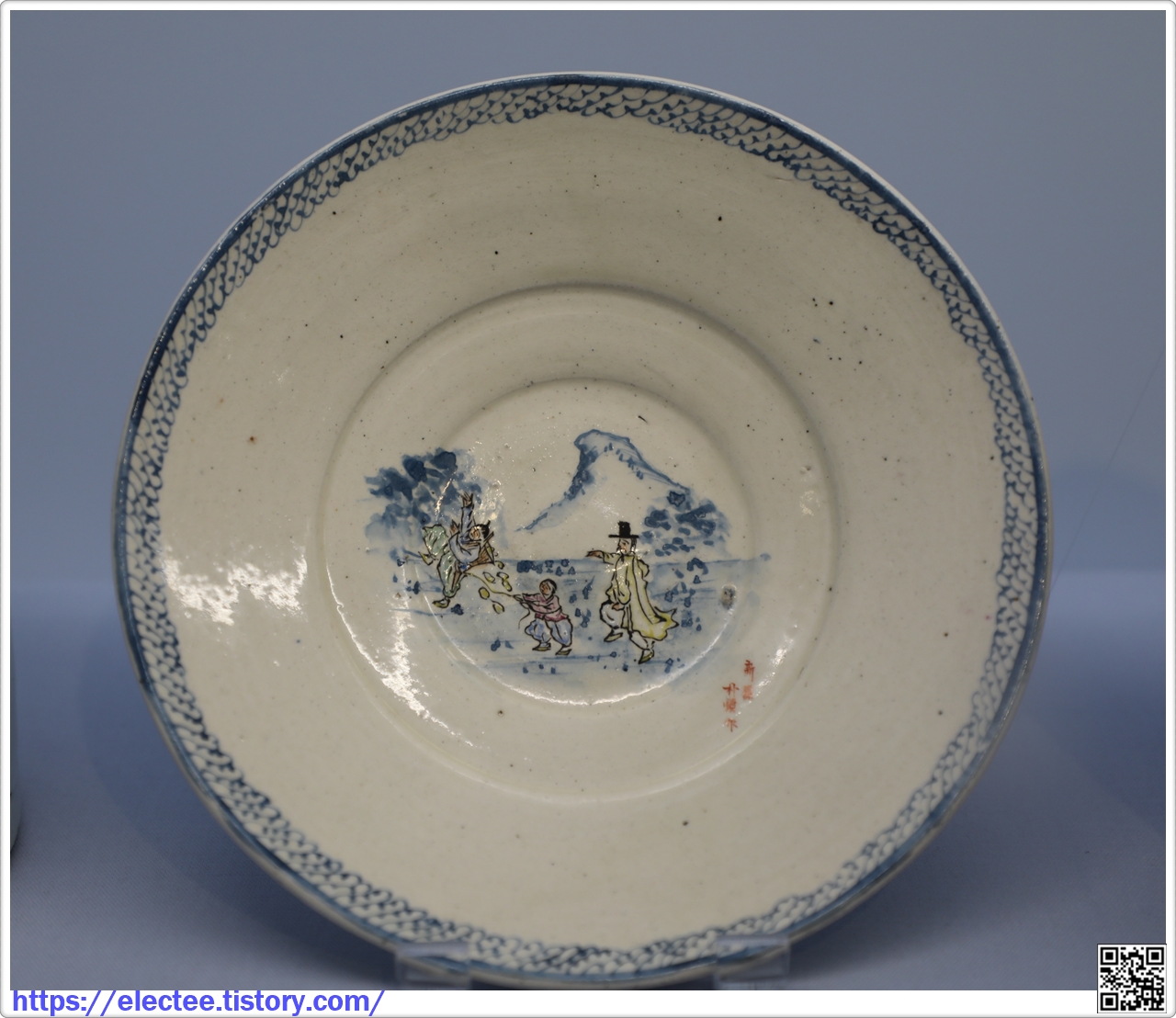 백자청화 다채풍속무늬 접시 白磁青書多彩風俗文楪匙