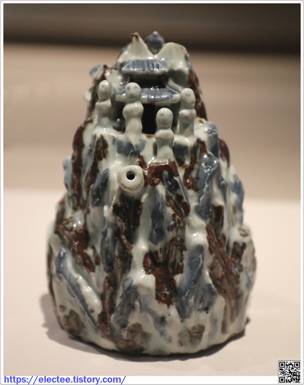 백자에 청화와 철화로 금강산 문양을 장식
