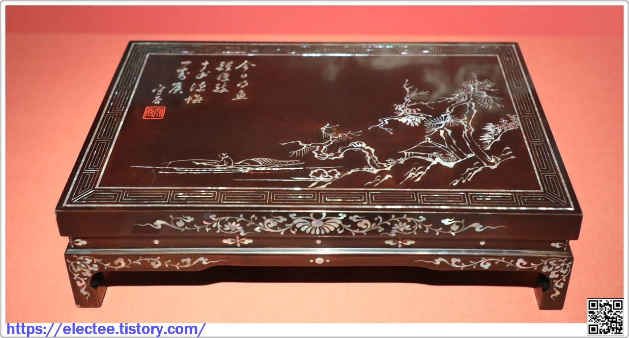 나전칠 낚시하는 어부그림 사각상 螺鈿漆釣魚山水圖四角床