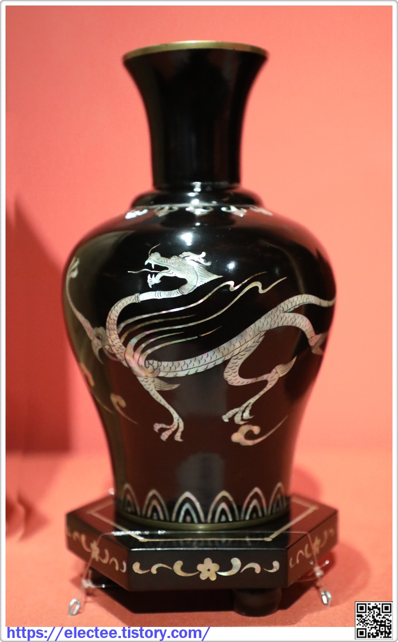 동태 나전칠 구름 용무늬 화병 銅胎螺鈿漆雲龍文花瓶