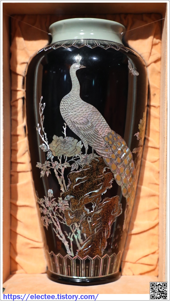도태 나전칠 공작무늬 화병 陶胎螺钿漆孔 雀文花瓶