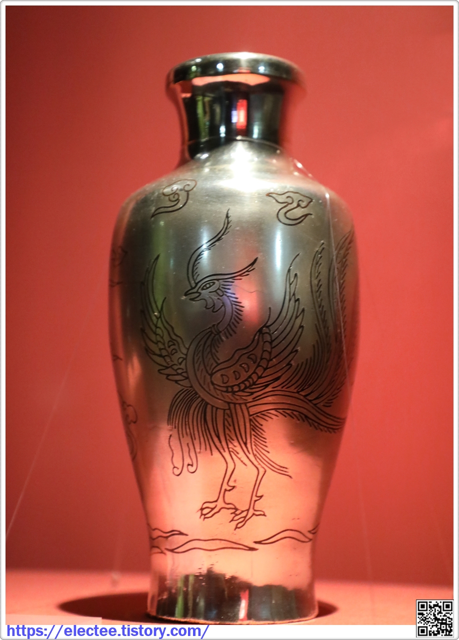 은제 봉황무늬 화병 銀製烏銅入象嵌鳳凰文花瓶
