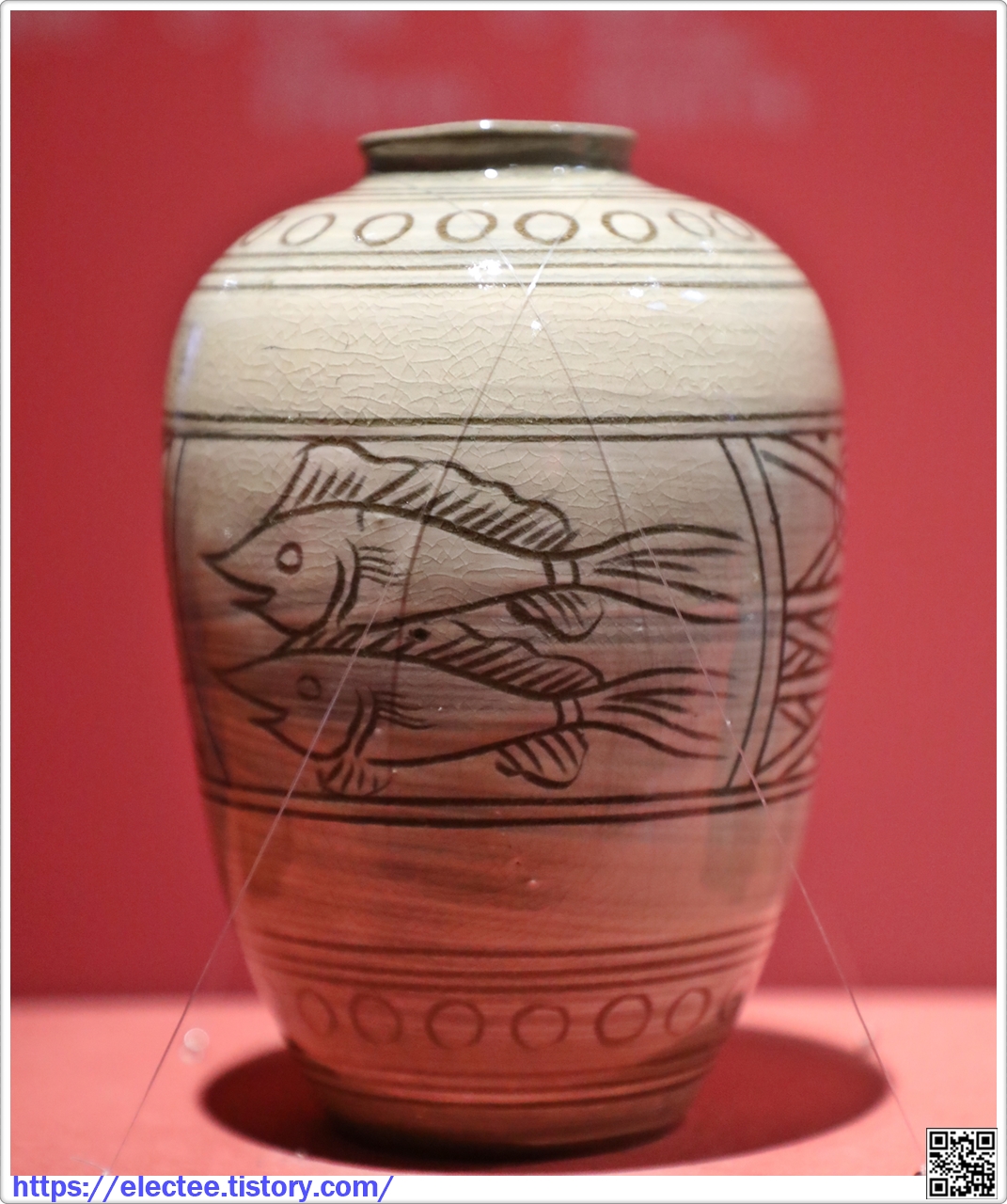 분청사기 물고기무늬 항아리 粉青沙器魚文小壺