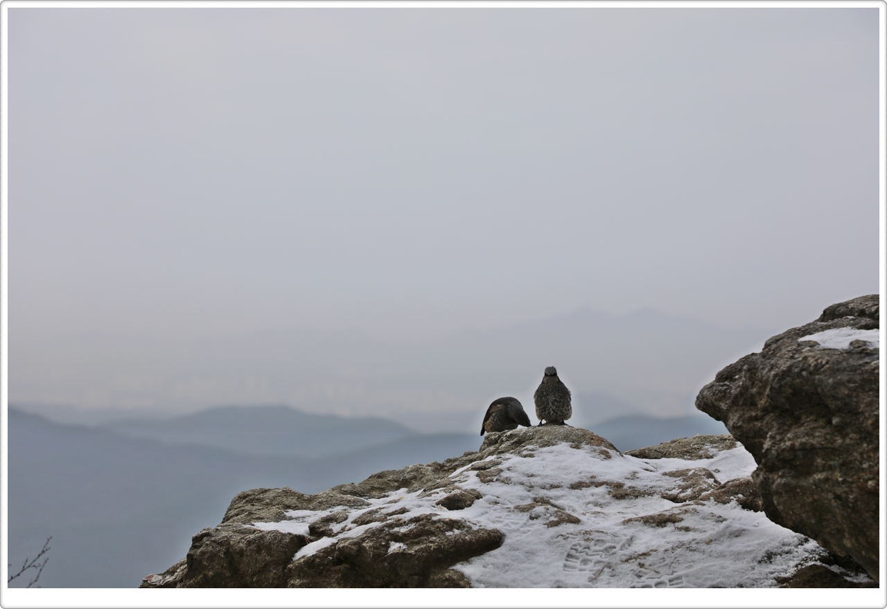 고도를 높이자 눈길이 시작되지만 빙판이 아니니 하산할 때까지 아이젠을 착용하지 않고 조심스럽게 이동했다.