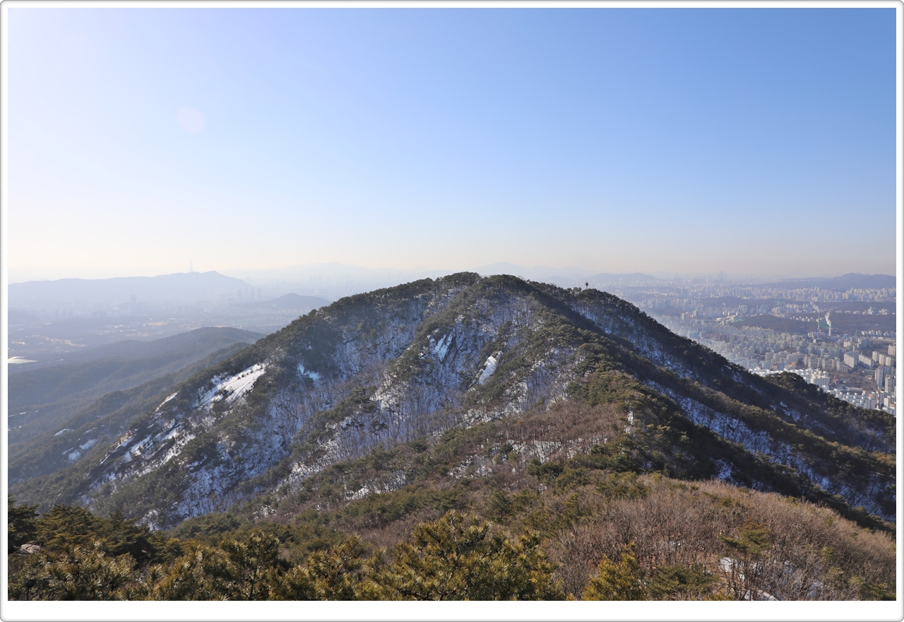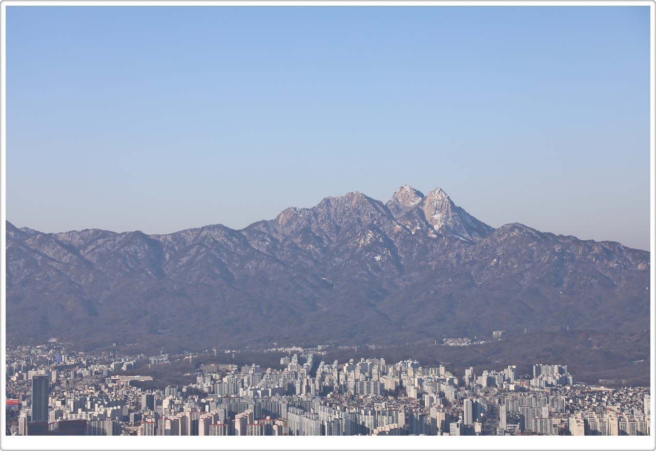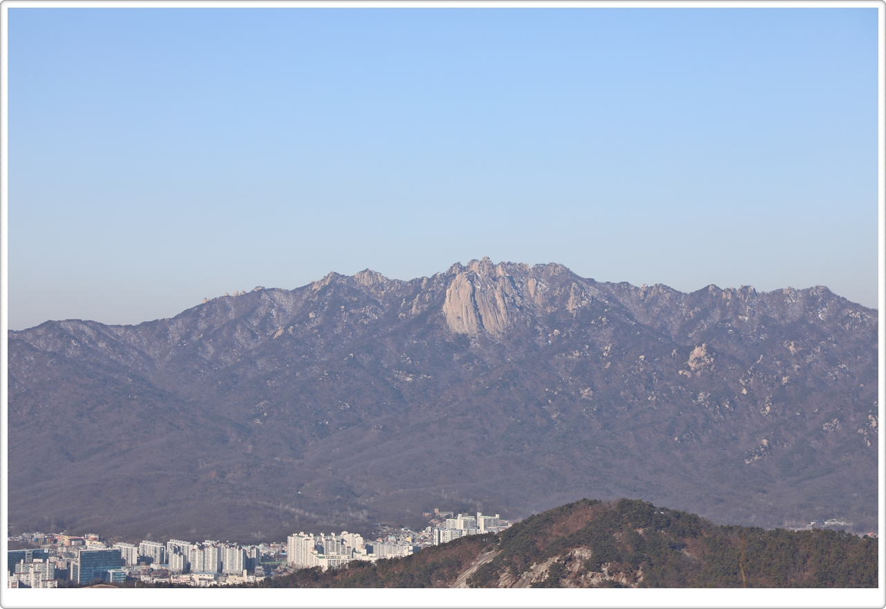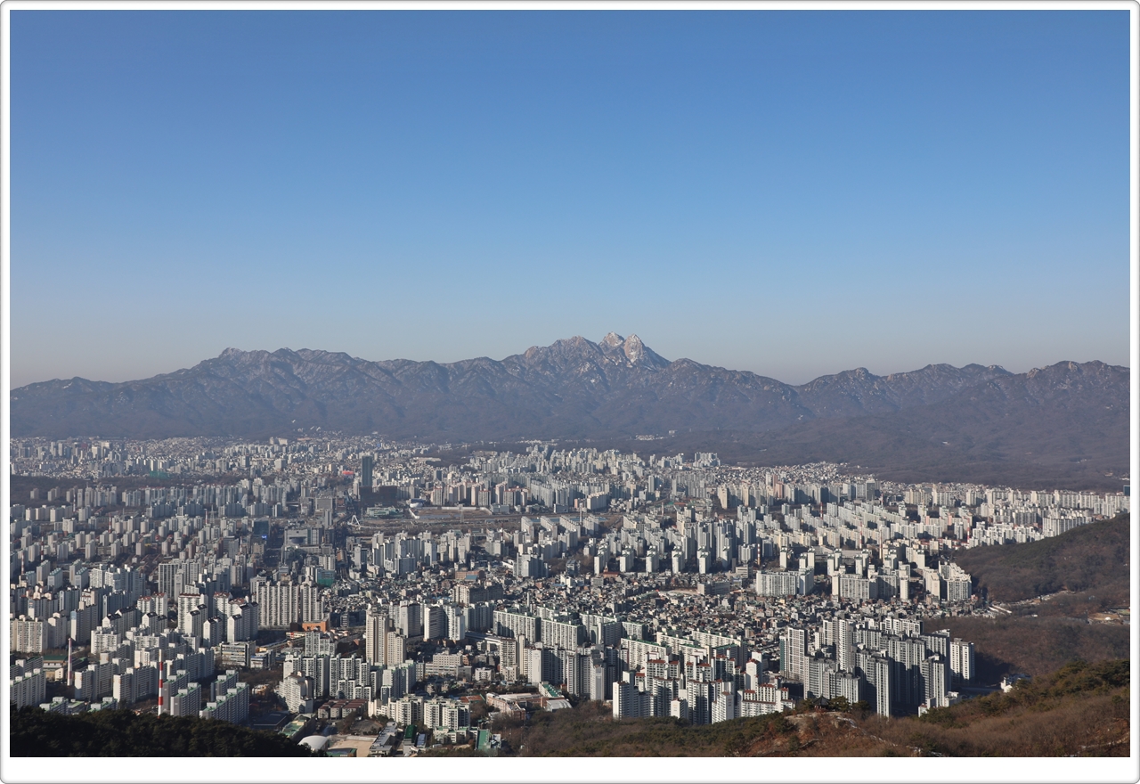 노원구 시가지를 지나 북한산 정상이 조망된다.