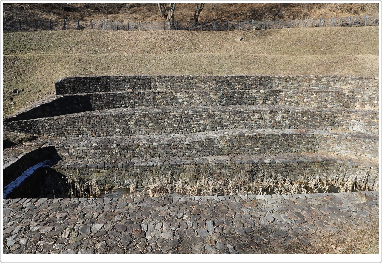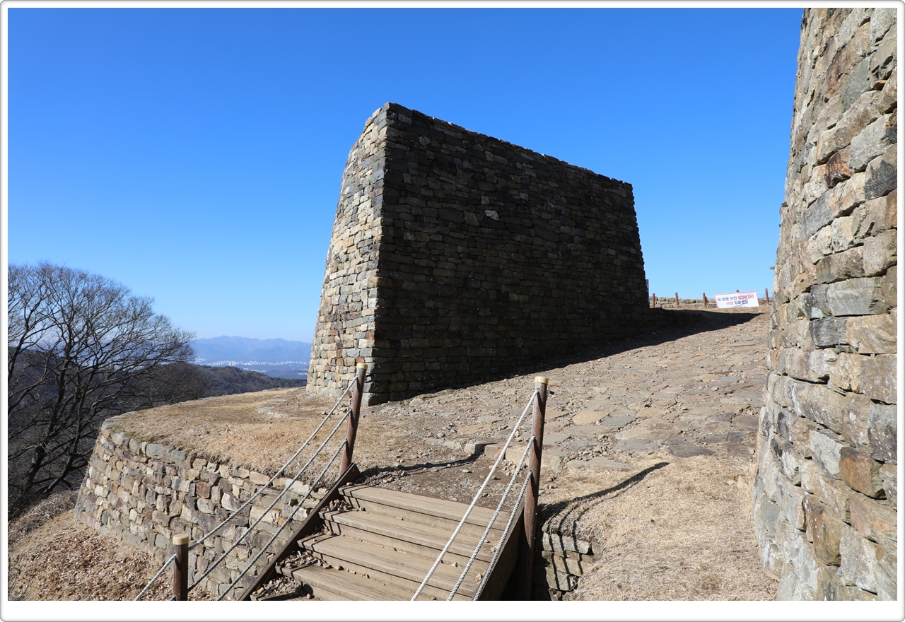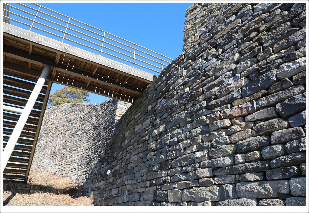 The excavated gate site is about 5.2 meters and abutments made by piling up stones, double-tiered in the east and triple-tiered in the west. These abutments, which projected slightly from the gate, served as an additional defensive feature to protect the gate.