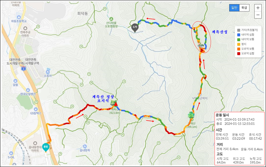 2024. 1. 15. (월) 09:17~12:55, 전체 3시간 40분 이동(휴식 18분 포함) 8.4km 이동