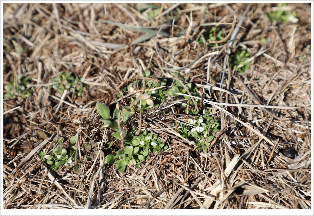 1월 중순이면 한겨울이라 간혹 영하 10도를 밑도는 날도 있는데, 새싹은 이렇게 파랗게 올라왔다.