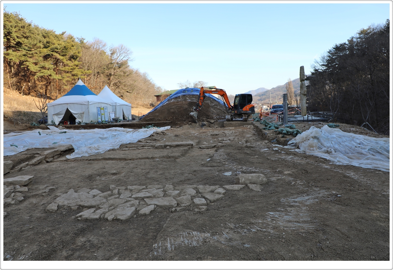 석불과 석탑 사이는 발굴조사가 진행 중인지 흙이 파헤쳐졌고, 흰색 페인트까지 칠했다.
