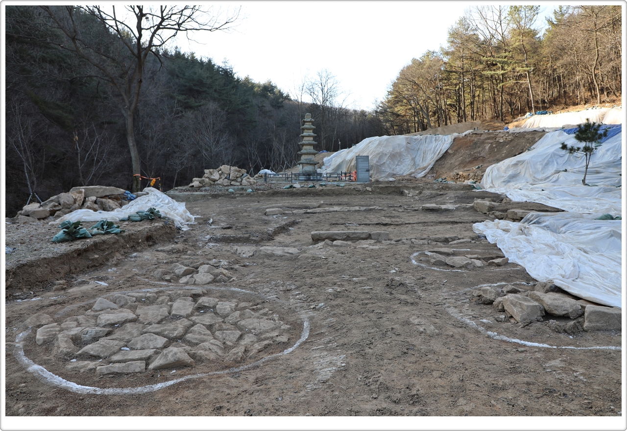 2017년 실시한 석탑 기초부 발굴조사 결과 중앙에서 서쪽으로 이격 되어 복원된 것으로 확인됨에 따라 2018년 공사 시 석탑 기초부 중앙으로 위치를 재조정하여 복원하였다.