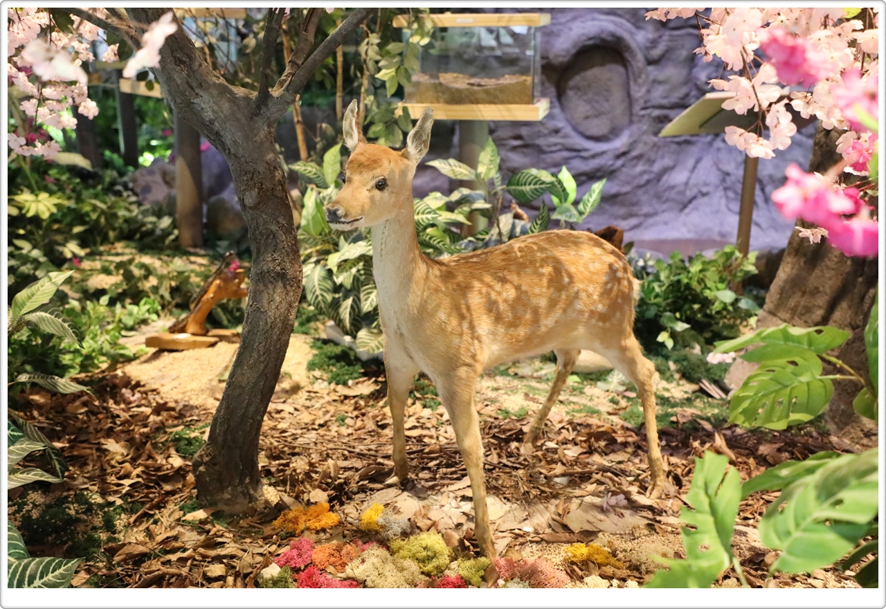 산림박물관에 전시된 새나 동물, 곤충 등은 사체를 발견하여 박제한 것이다.