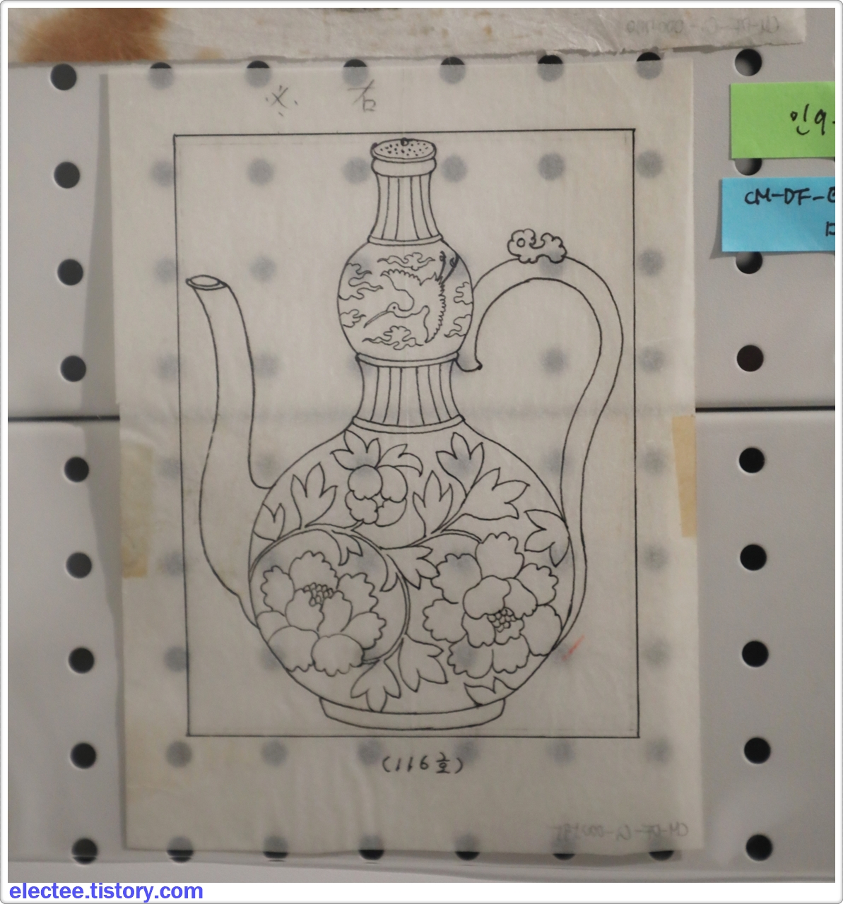 청자 등을 만들 때 즉흥적으로 만드는 게 아니라 이런 도안을 먼저 만든 다음 작업으로 이어지게 된다.
