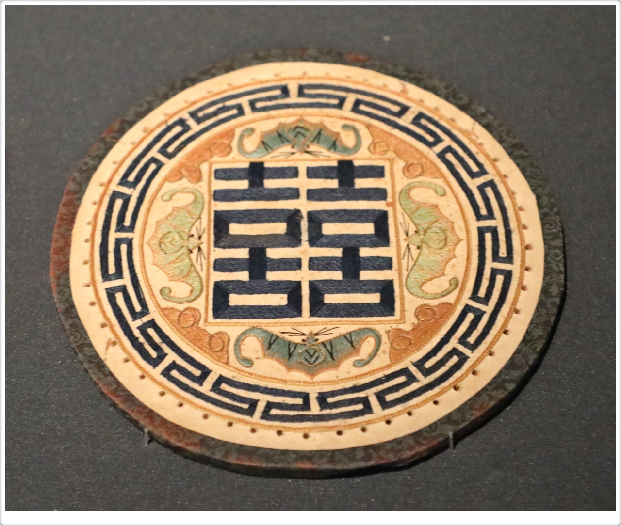 아래 두 개의 자수와 囍 자수까지 베갯모이다.