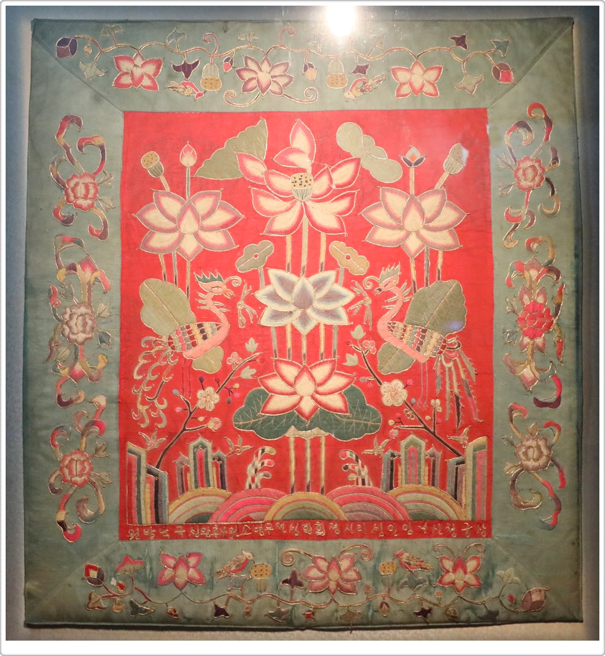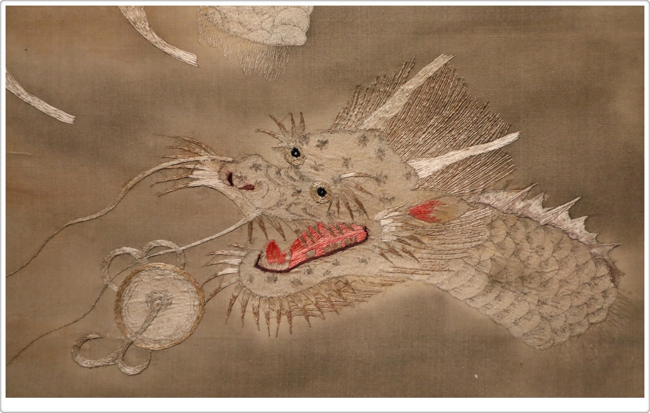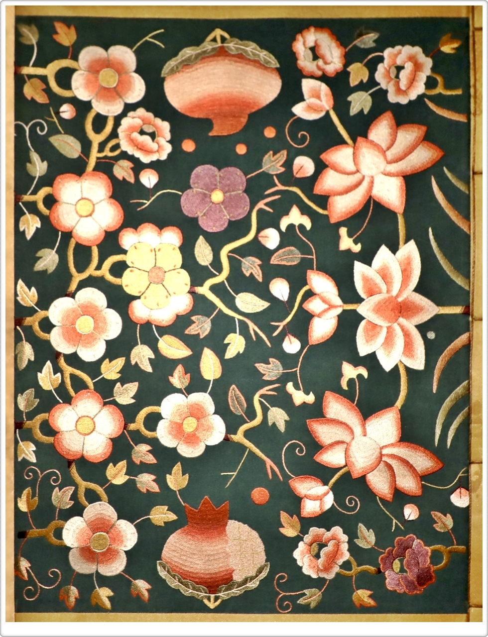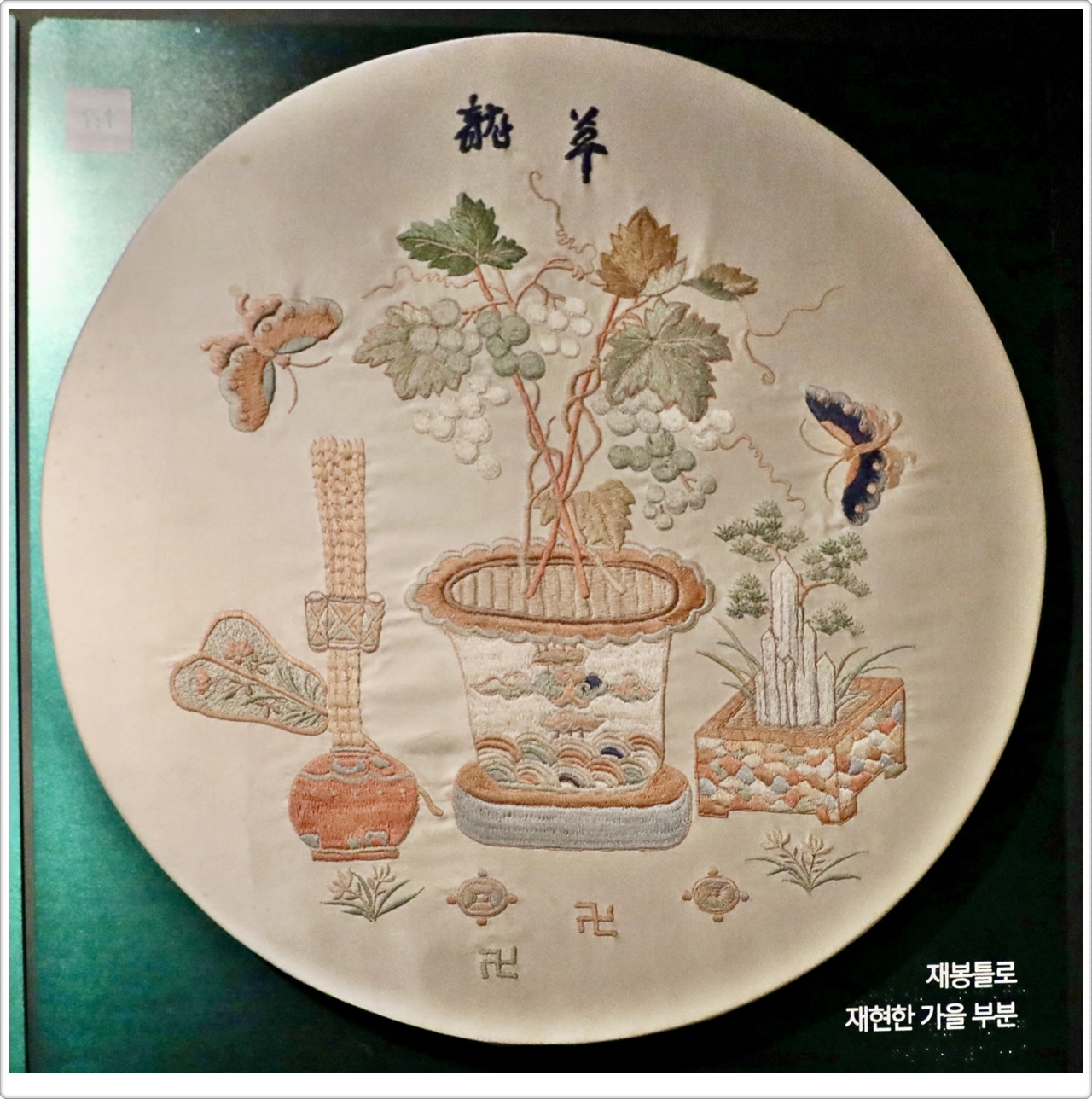 작품 전체를 담기 위해 조금 멀리서 찍었기에 동양화처럼 보이지만, 모두 자수라는 걸 염두에 두고 보아야 한다.