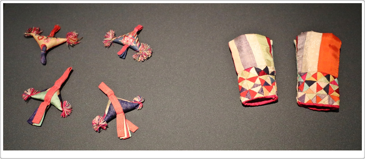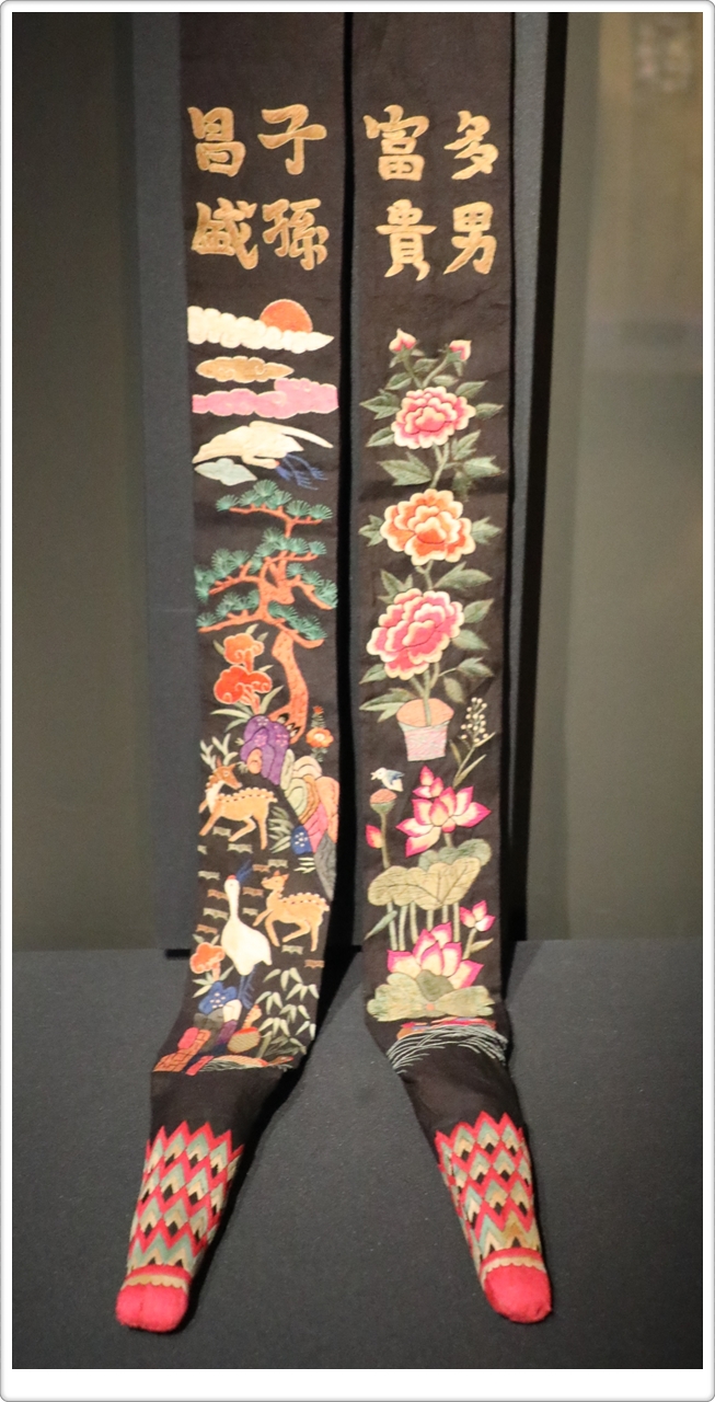 의약과 의술의 혜택이 부족했던 조선 후기, 많은 아이가 어른이 되기 전에 세상을 떠났다. 때문에 부모들은 아이들이 탈 없이 건강하게 자라기를 간절히 소망하였다. 그래서 장수를 의미하는 십장생과 복을 의미하는 박쥐 문양을 비롯하여 오래 살고 복을 많이 받으라는 뜻의 ‘百壽百福(백수백복)', 기쁜 일이 생기라는 뜻의 ‘囍(희)’ 등의 글자를 돌띠, 굴레, 댕기, 주머니 등에 수놓았다. 십장생 중 학과 사슴은 신선의 벗으로서 천상과 지상을 연결한다고 믿었다.