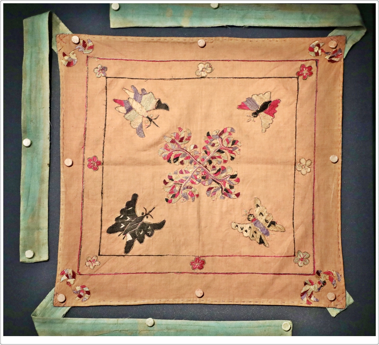 사람은 한 번 태어나면 누구나 죽기 때문에 현생에 대한 애착과 사후의 평안함을 염원하는 마음을 지니고 있다. 그래서 사는 동안은 다복하게, 사후에는 좋은 곳으로 가거나 환생하길 바라는 마음을 담아 한 땀 한 땀 수를 놓았다. 저녁에 지고 아침에 새롭게 피어나는 연꽃에는 환생을 바라는 마음이 담겨 있고, 악귀를 쫓아낸다고 믿었던 복숭아로 불로장생을 기원하는 마음을 표현했다. 석류가 어린아이를 보호한다는 설화 때문에 다산과 풍요를 소원할 때는 석류를 수놓았다.
