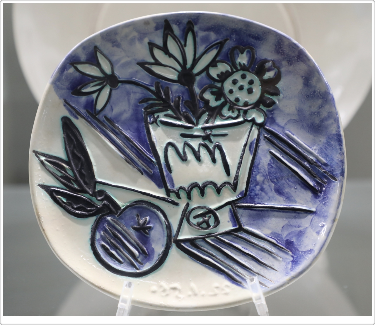 피카소는 반복적으로 두 개 이상의 정물을 병치시키는 방법을 통해 형태와 표현의 가능성에 대해 탐구했습니다. 도자에서 정물은 입체주의의 탐구적인 자세와 다른 일상적이고 편안한 장식적 요소로 표현되었습니다. 식탁 위의 사물들을 실용적인 접시 위에 새롭게 장식함으로써 일상적 기물을 예술로 전환하였습니다.