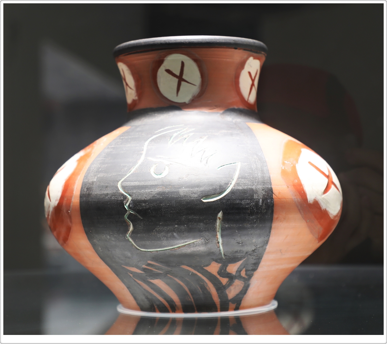 피카소가 미술을 처음 시작했던 유년 시절부터 말년까지 가장 많이 제작한 작품은 초상화였습니다. 인물은 그에게 가장 흥미로운 탐구의 대상이었기 때문입니다. 그의 도자 작품에서 가장 큰 비중을 차지하는 것 역시 '얼굴'입니다. 피카소는 동일한 모티브를 반복해서 그리기를 즐겼는데, 이러한 제작법은 하나의 대상을 다양하게 확장해 가는 실험의 과정이었습니다. 도자 작품 속에 반복적으로 등장하는 얼굴도, 석고 틀 위에 백토를 올린 뒤 찍어 만든 작품부터 백토 위에 검은 화장토를 채색하고 나이프로 얼굴선을 새긴 후 유약을 칠한 작품에 이르기까지, 재료와 기법에 따라 무한하게 확장되었습니다.