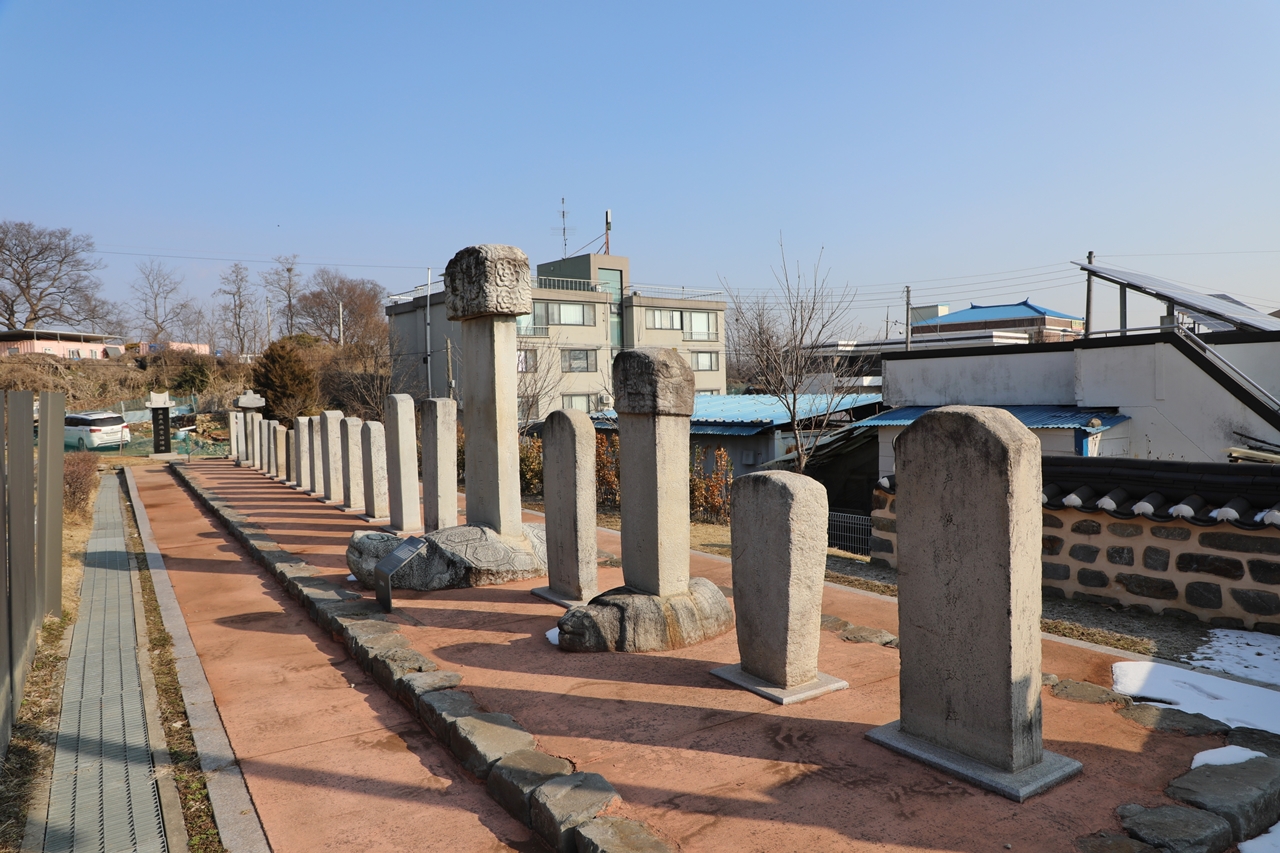 비석의 종류는 벼슬아치의 공덕을 기리기 위해 세운 선정비와 영세불망비를 비롯하여 서양인을 가까이하지 말라는 의미로 세운 척화비 등이 있고, 비를 세운 인물은 충청도관찰사, 암행어사, 신창현감 등 다양하다. 비석의 형태는 대부분 둥근 모양의 원수圓首이지만 네모난 모양의 방수方首도 있고, 기와지붕 모양의 와가이수瓦家螭首 거북 모양의 비석 받침돌과 용 모양의 비석 머릿돌을 사용한 귀부이수龜趺螭首 등이 있다. 재질은 모두 화강암이다. 비석은 건립 시기와 종류를 고려하여 배치하였다.