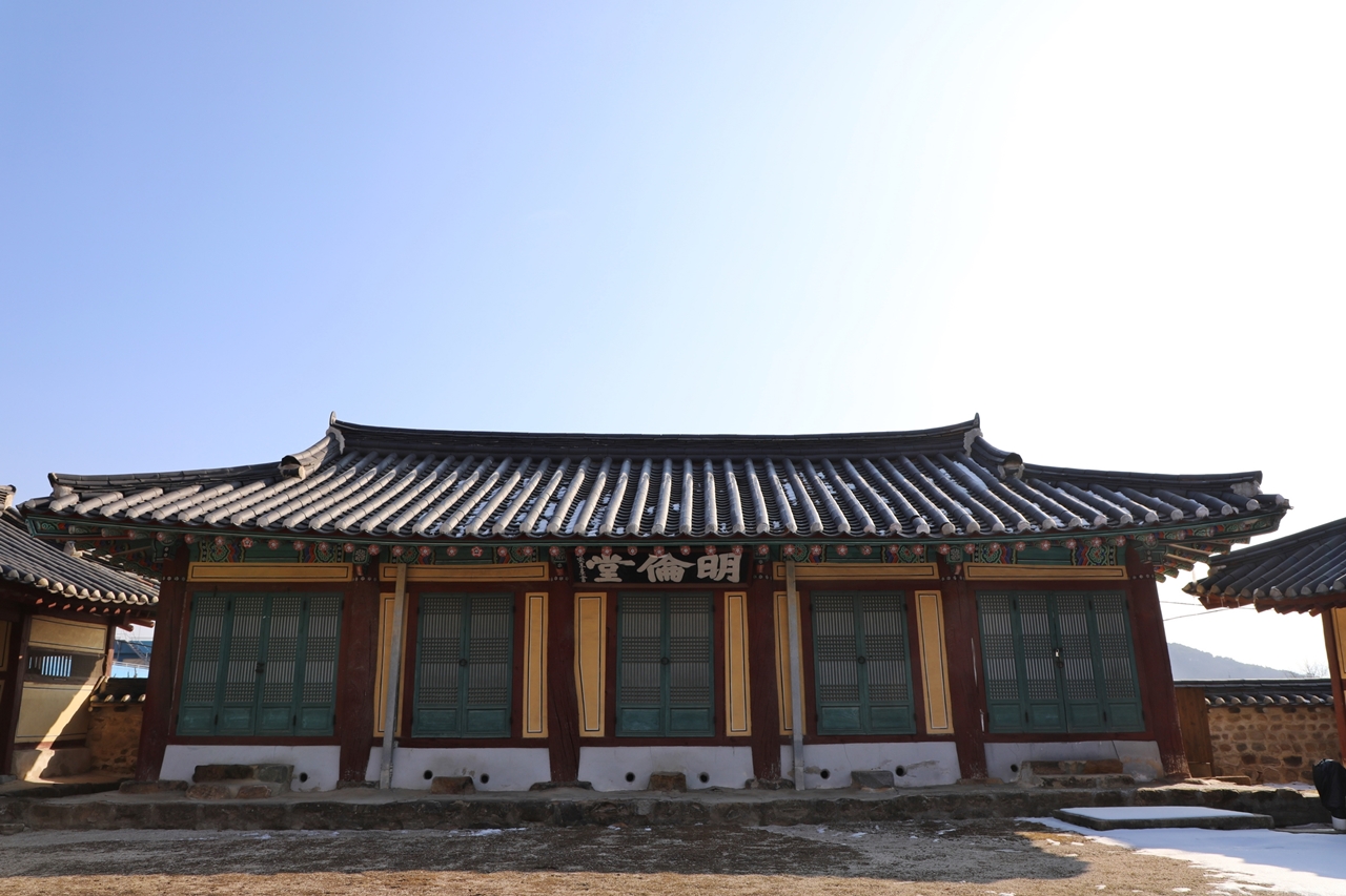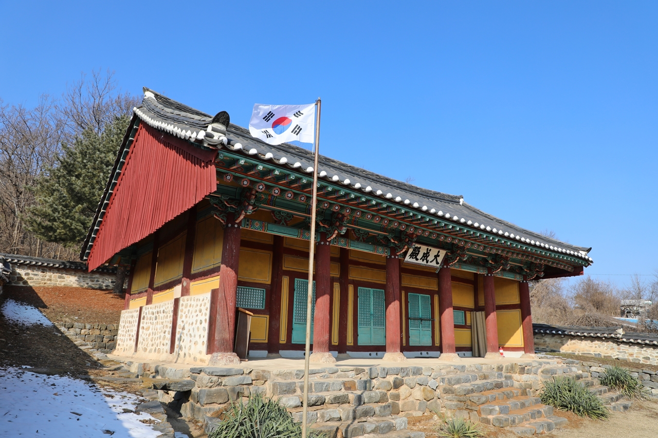 in 1872 (the 9th year of the reign of King Gojong) to educate young local people. The school consists of Daeseongjeon Shrine, which measures 5 kan by 3 kan, and Myeongnyundang Lecture Hall (5 kan by 2 kan), as well as a middle gate and two dormitories, Dongjae (6 kan by 2 kan) and Seojae (5 kan by 2 kan) located in the courtyard between the shrine and the lecture hall.