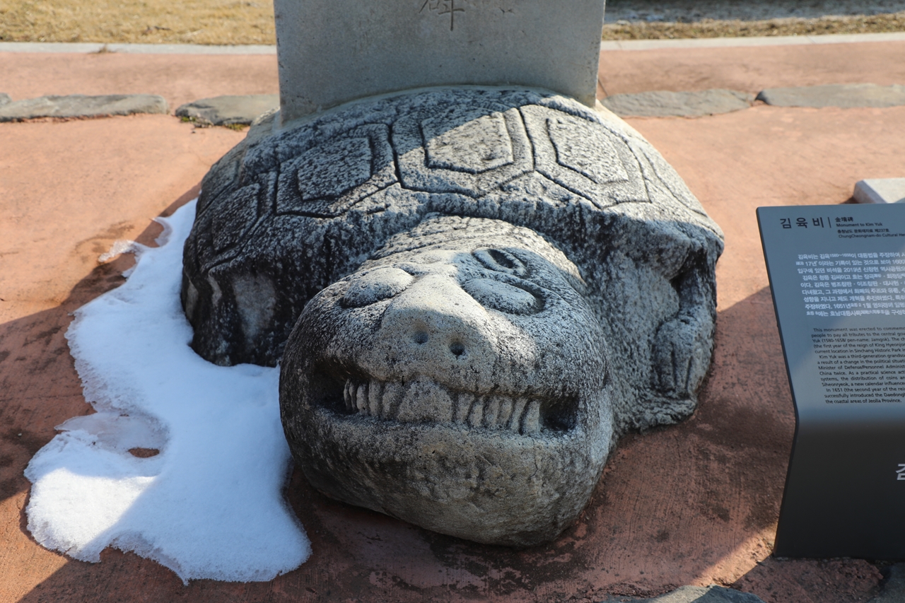 김육비는 김육(1580~1658)이 대동법을 주장하여 시행한 것을 기리기 위하여 세운 비이다. 비문에 '순치順治 17년' 17년'이라는 기록으로 보아 1660년 조선 현종 원년에 세워졌음을 알 수 있다. 신창초등학교 입구에 있던 비석을 2019년 신창현 역사공원으로 옮겼다.