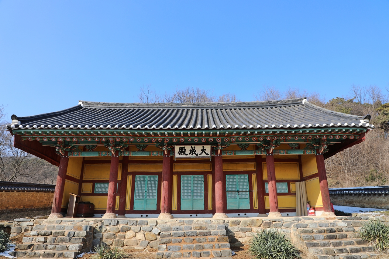 in 1872 (the 9th year of the reign of King Gojong) to educate young local people. The school consists of Daeseongjeon Shrine, which measures 5 kan by 3 kan, and Myeongnyundang Lecture Hall (5 kan by 2 kan), as well as a middle gate and two dormitories, Dongjae (6 kan by 2 kan) and Seojae (5 kan by 2 kan) located in the courtyard between the shrine and the lecture hall.
