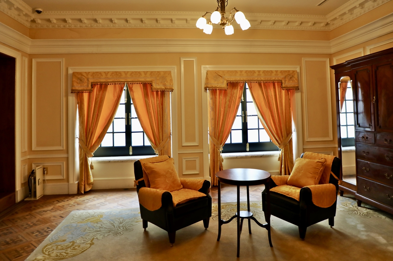 Marked by Western-style interior decoration, this room was used as an area where guests met with the Korean emperor. Its interior and furniture are decorated with the plum blossom design, the seal of the Korean imperial family.