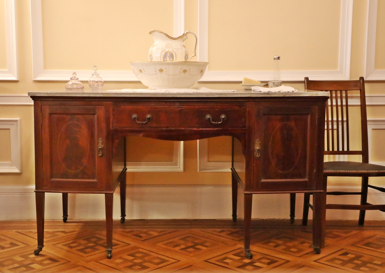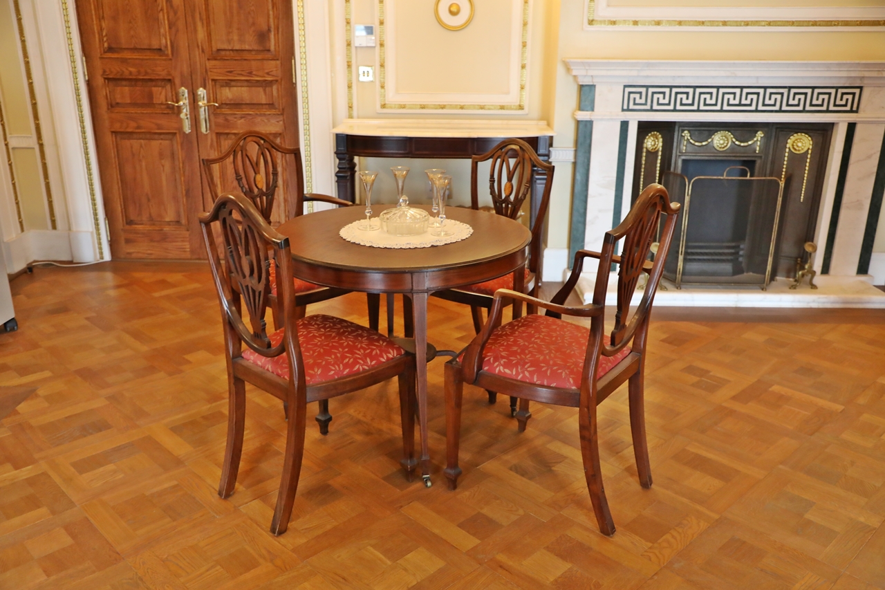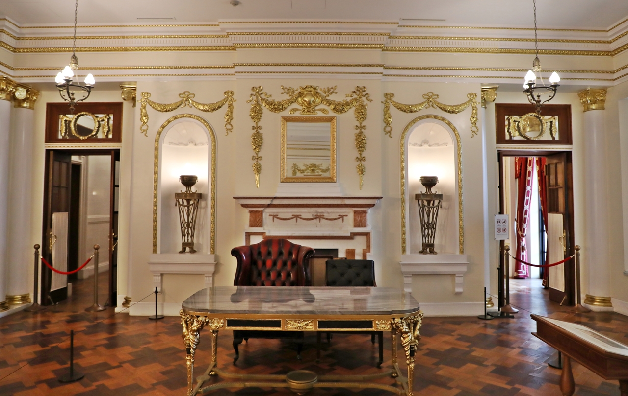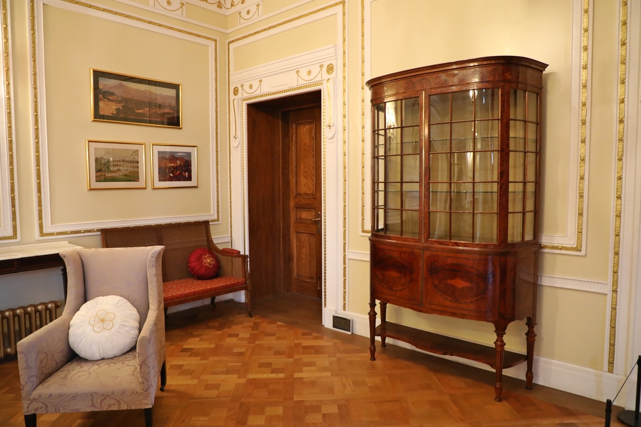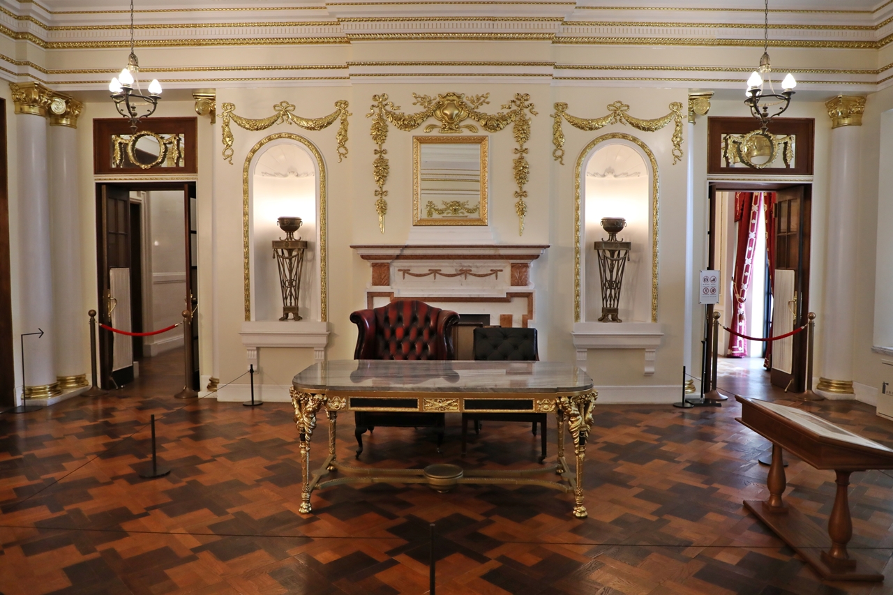 This private drawing room was used by the empress for various activities such as reading and reception of guests and furniture are more luxurious than those in other rooms. The furniture are inscribed with 'EMPRESS'S BOUDOIR.'