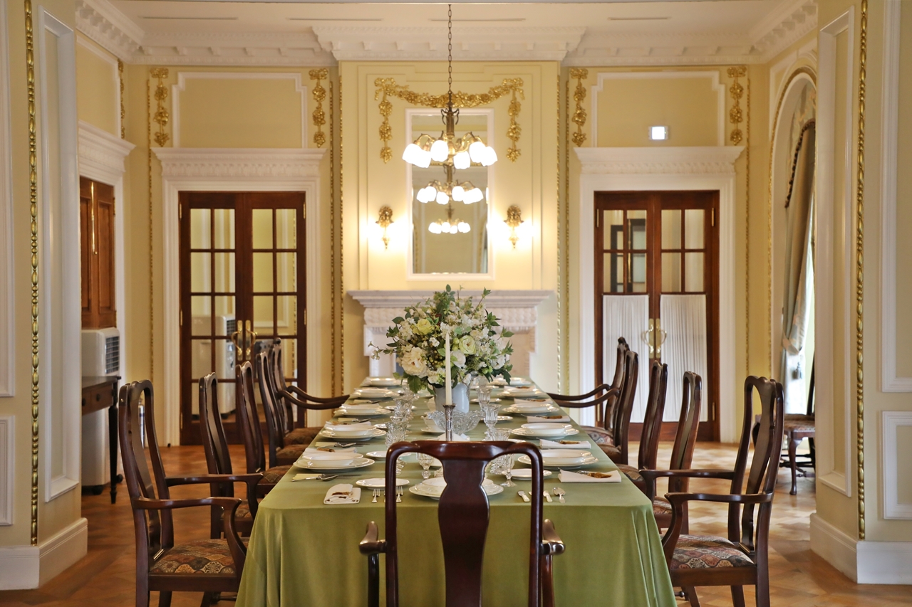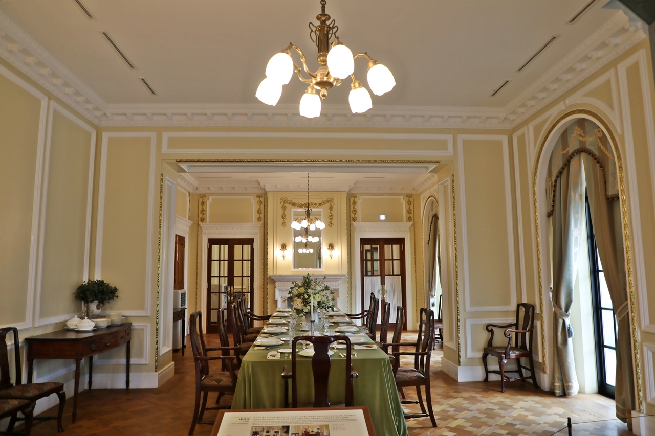 This room in used as a venue for dining and official gatherings. There are records of the official dinners held at the Korean imperial court where full-course Western meals were served. The restoration of the dining scene is based on an illustration contained in Daehanyejeon (The Code of Rites of the Korean Empire).