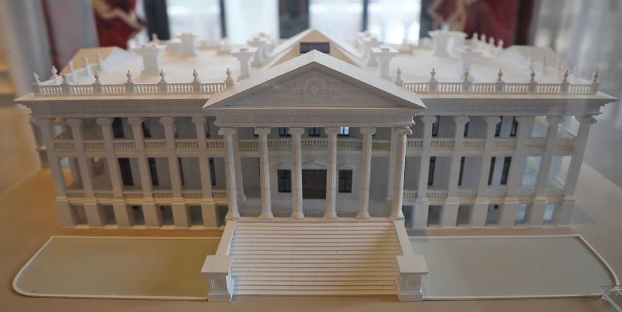아크릴 박스 안에 석조전을 1/100 모형으로 축소한 것이다.