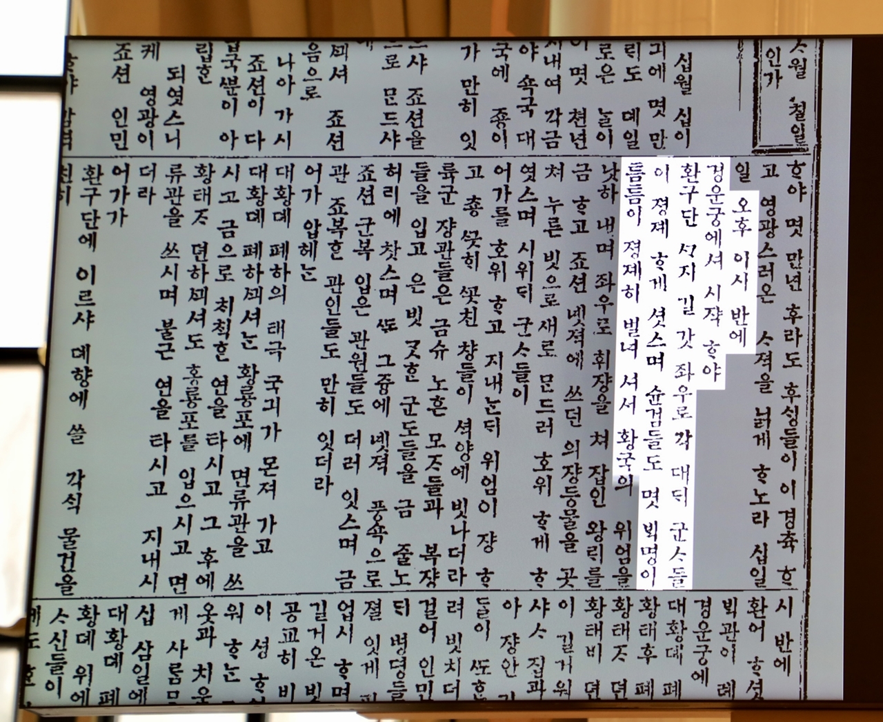 그리하여 황제의 자리에 나아감에 국호를 정하여 가로되 '대한'이라 한다. (안내문)