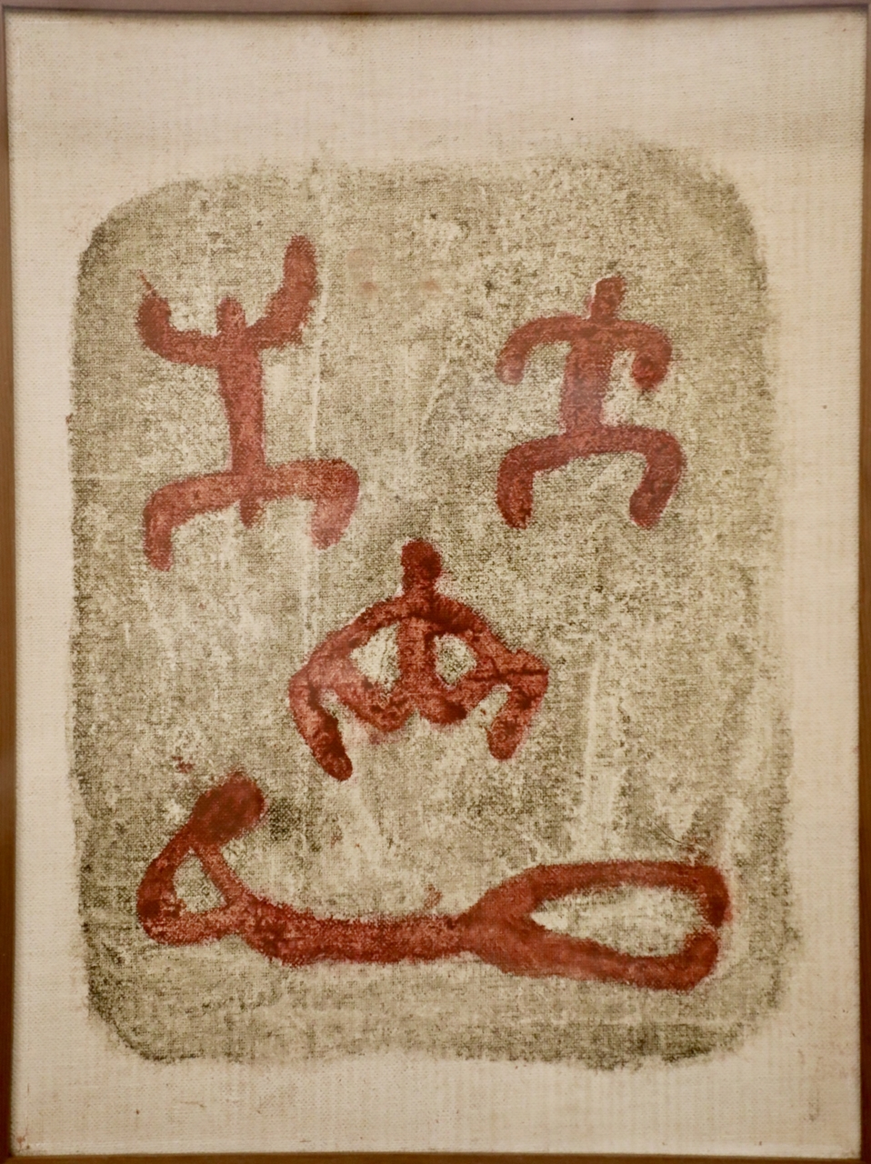 돌 위에 그림을 그린듯한 이 작품은 거친 질감과 액자식 화면구성이 인상적이다. 두텁게 쌓아 올린 물감층 위에 수많은 스크래치를 내었고, 그로 인해 미묘하게 달라지는 색감들이 푸른 삭면을 다양하고 풍성하게 꾸며주고 있다. 화면 위에는 간결한 선으로 춤추는 인물들을 묘사하고 인물들의 형태는 반구대 암각화, 동굴벽화 또는 고대 그리스 디필론 도기의 문양 등을 연상케 한다..