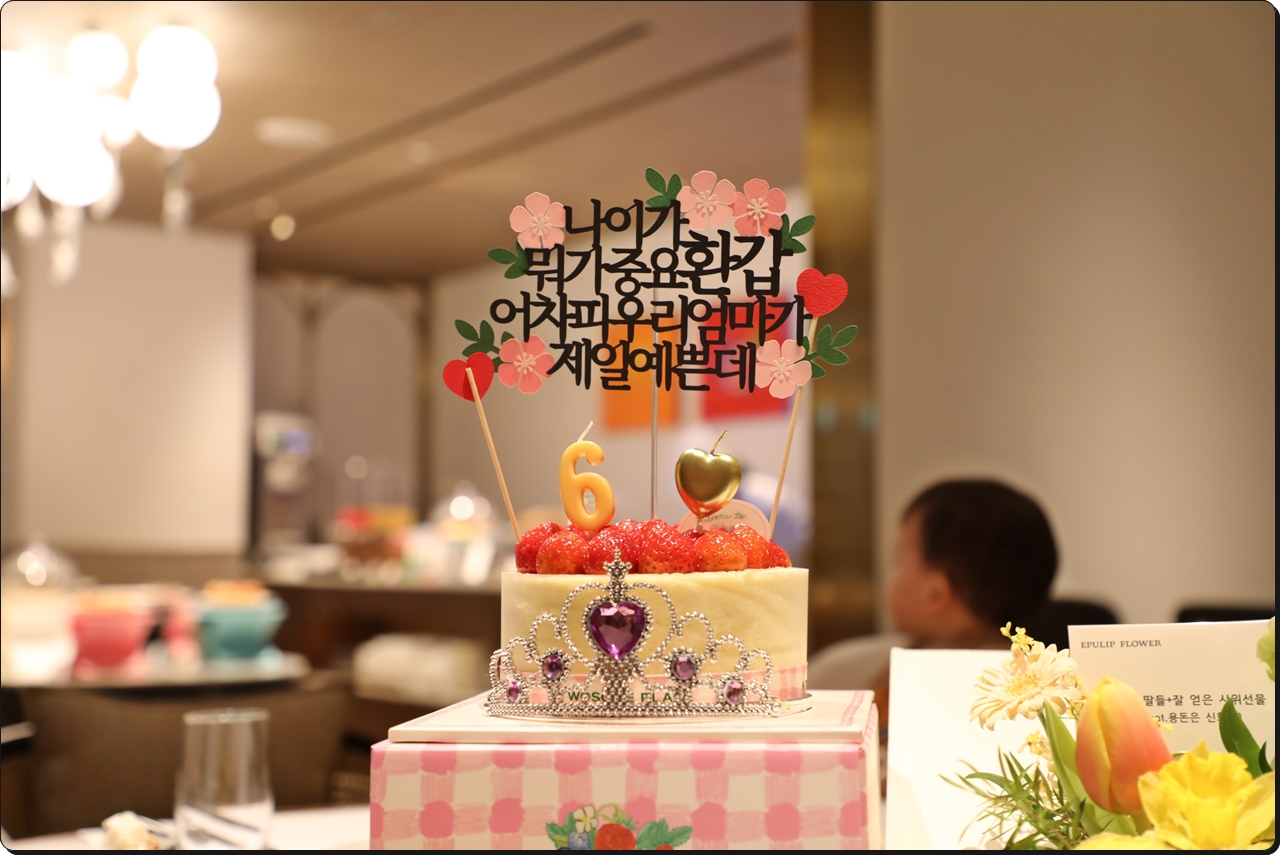 자녀와 사위가 예약한 롯데호텔 2층 라세느 앞에서 기다리고 있는데, 짜잔~하고 손주가 나타났다.