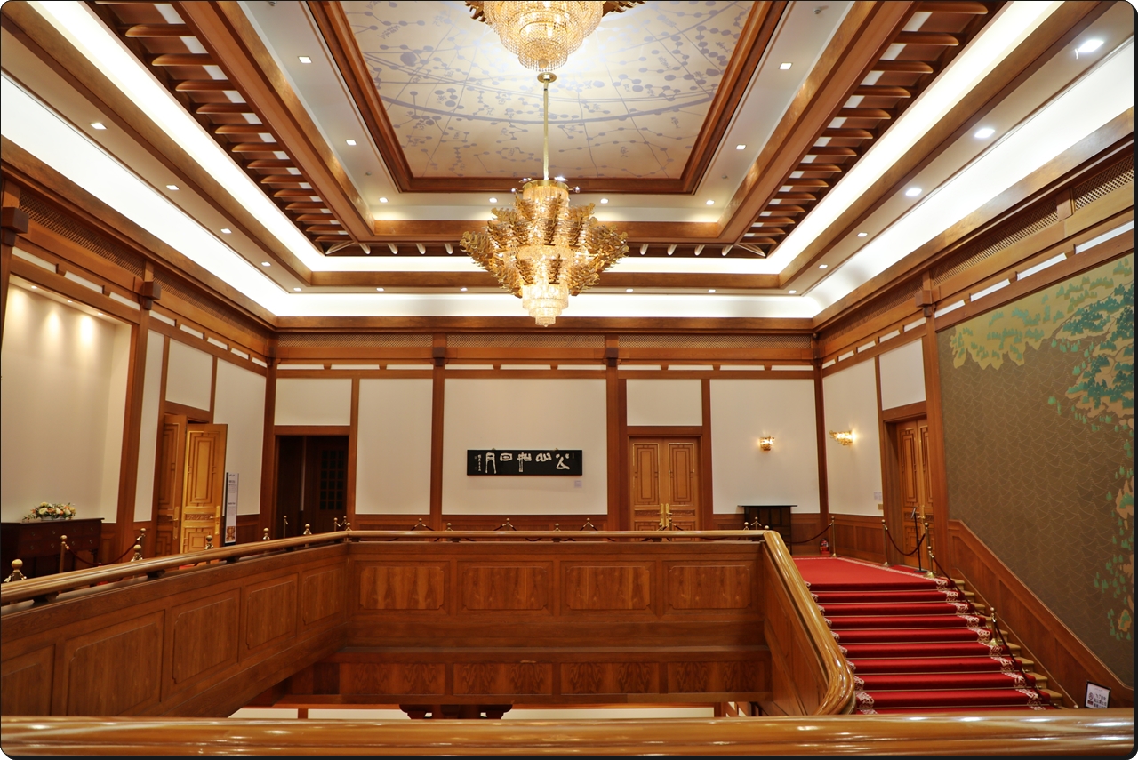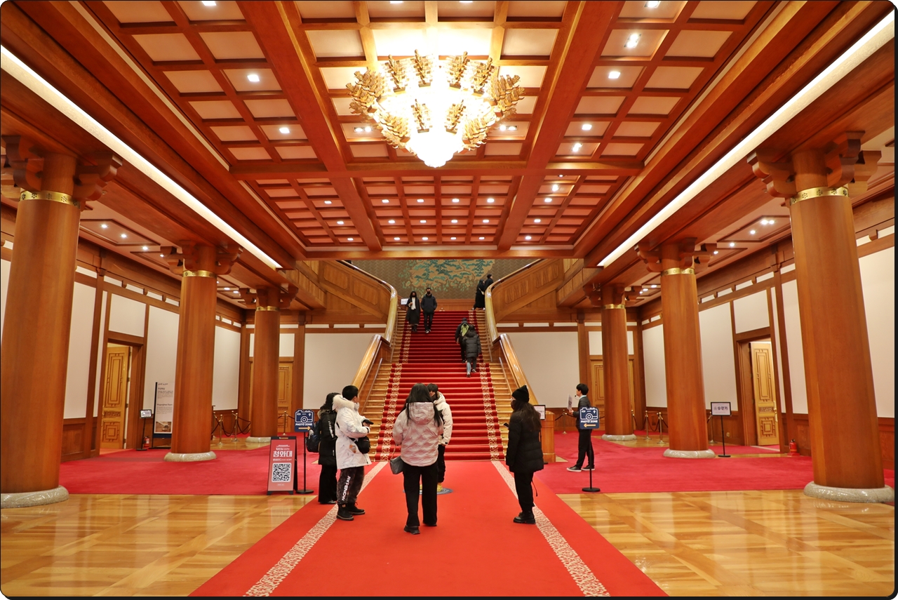 청와대 방문객들은 현관 로비에서 이 층계를 배경으로 인증사진을 찍는다.