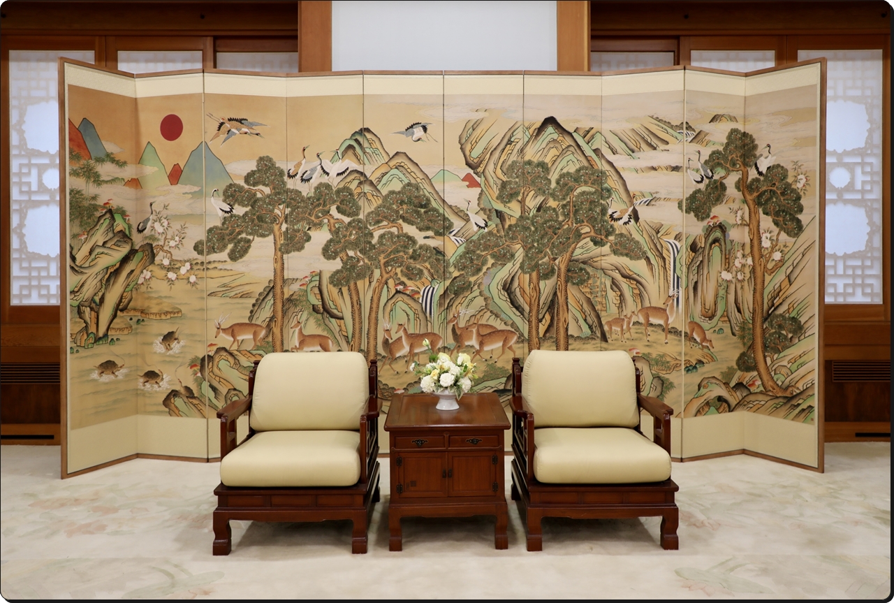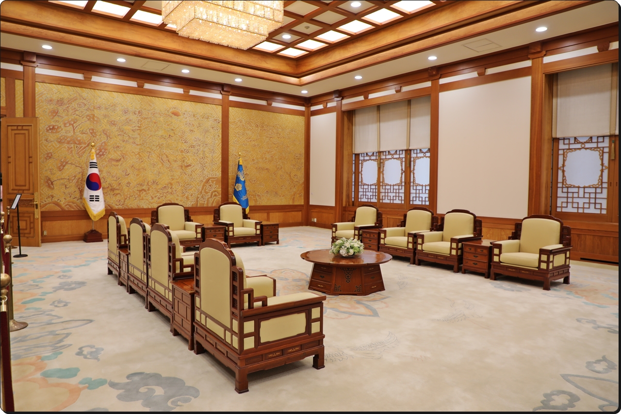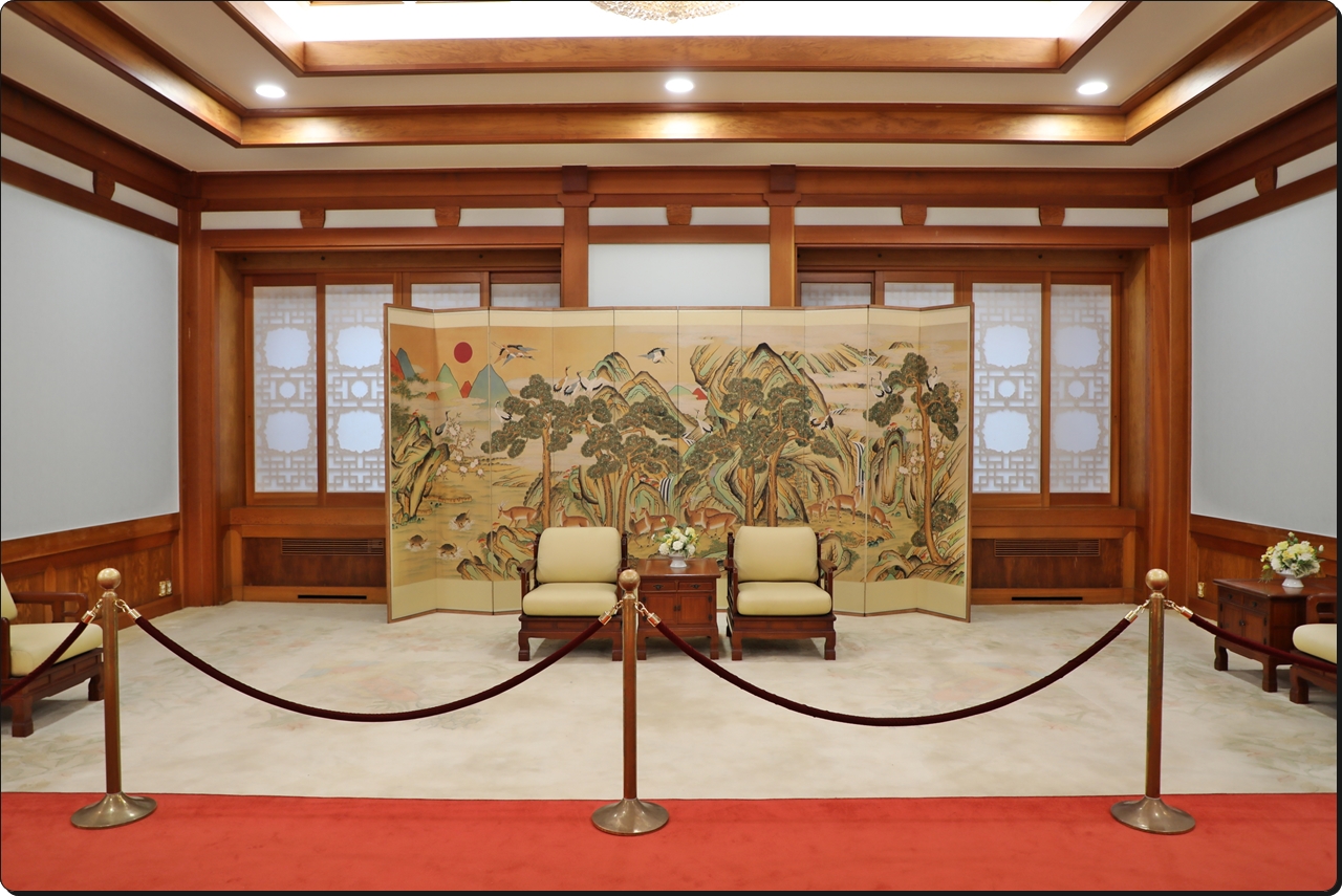 대통령과 외빈이 만나는 장소로 사용되었다. 동쪽 벽면은 황금색 「십장생문양도」로 장식하였으며 창문은 나무 창틀과 문살 위에 한지를 마감하여 한국적인 분위기를 연출했다.