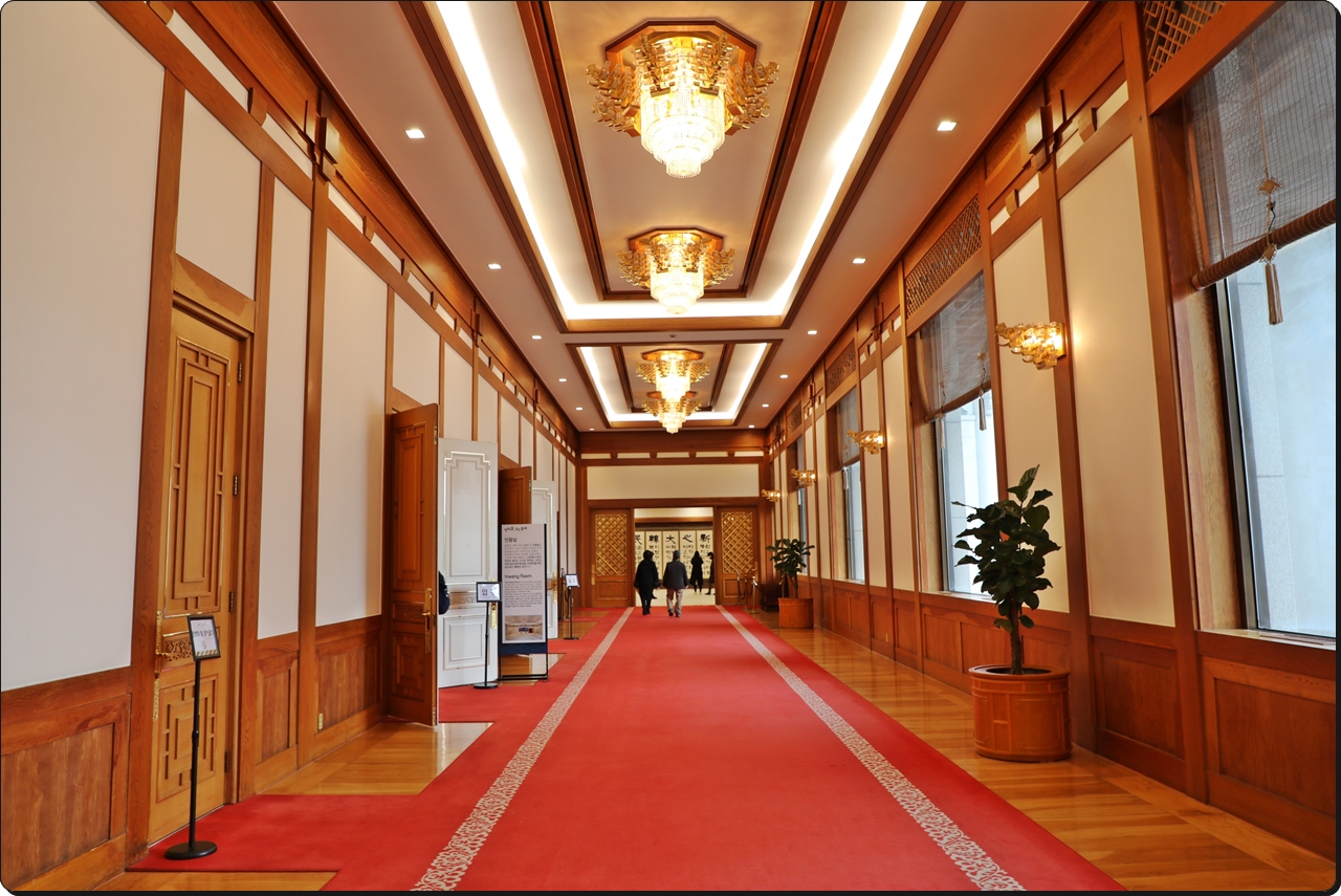 청와대 서쪽 산의 이름을 딴 인왕실은 한국적인 요소가 많은 본관의 주요 공간들과 달리 서양식으로 꾸몄다.