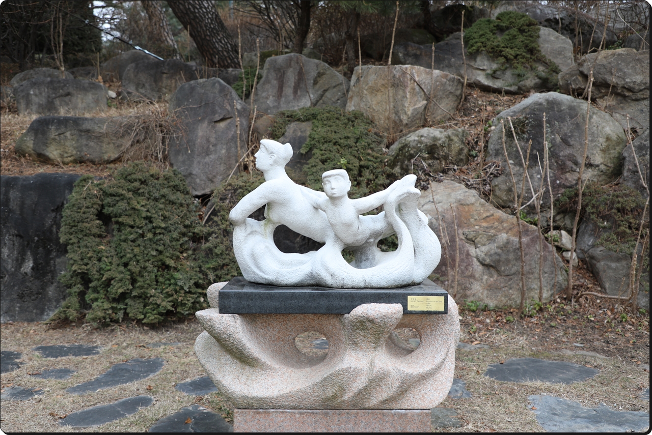<해율海律>은 《제15회 대한민국미술전람회》에서 대통령상을 받은 작품이다. 녹지원에 설치된 이 작품은 대리석의 재질감을 최대한 살려 어머니와 아들이 파도를 타고 있는 형상을 역동적으로 표현하였다.