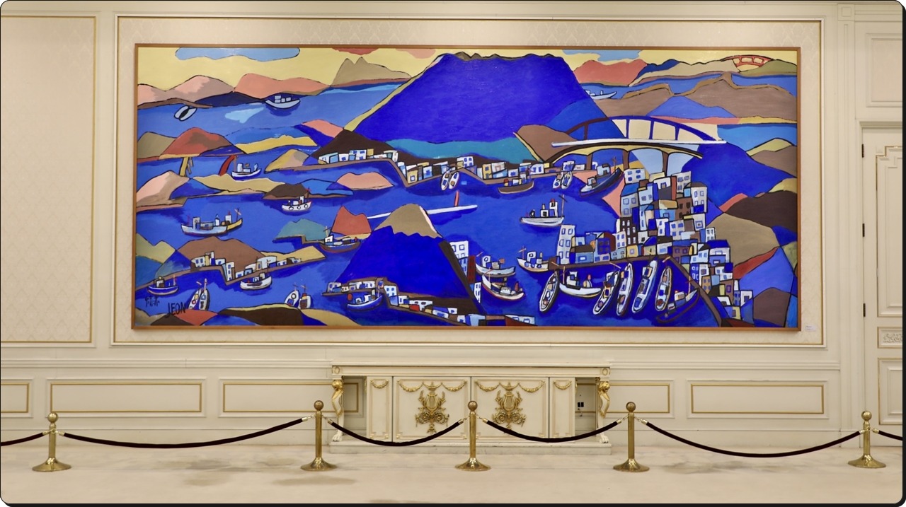 이 그림은 1층 로비에서 2층으로 올라가는 양쪽 계단으로 갈라지는 층계참 벽면에 걸렸다.