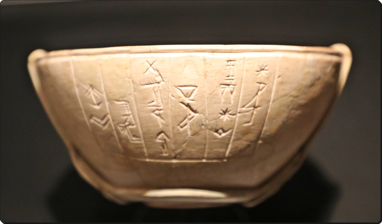 “인안나 여신께, 한파-아누쿠쉬의 아내 헤-우투가 [이 그릇을] 봉헌한다"