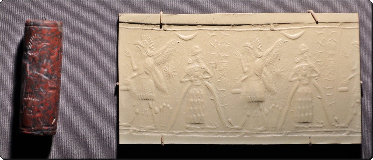 이쉬타르 신상에 기도하는 장면을 새긴 원통형 인장