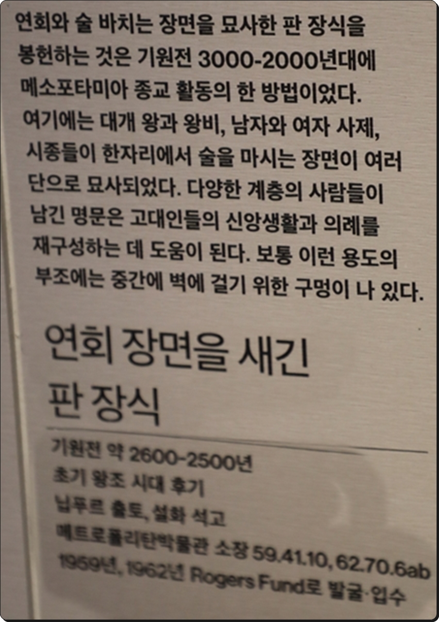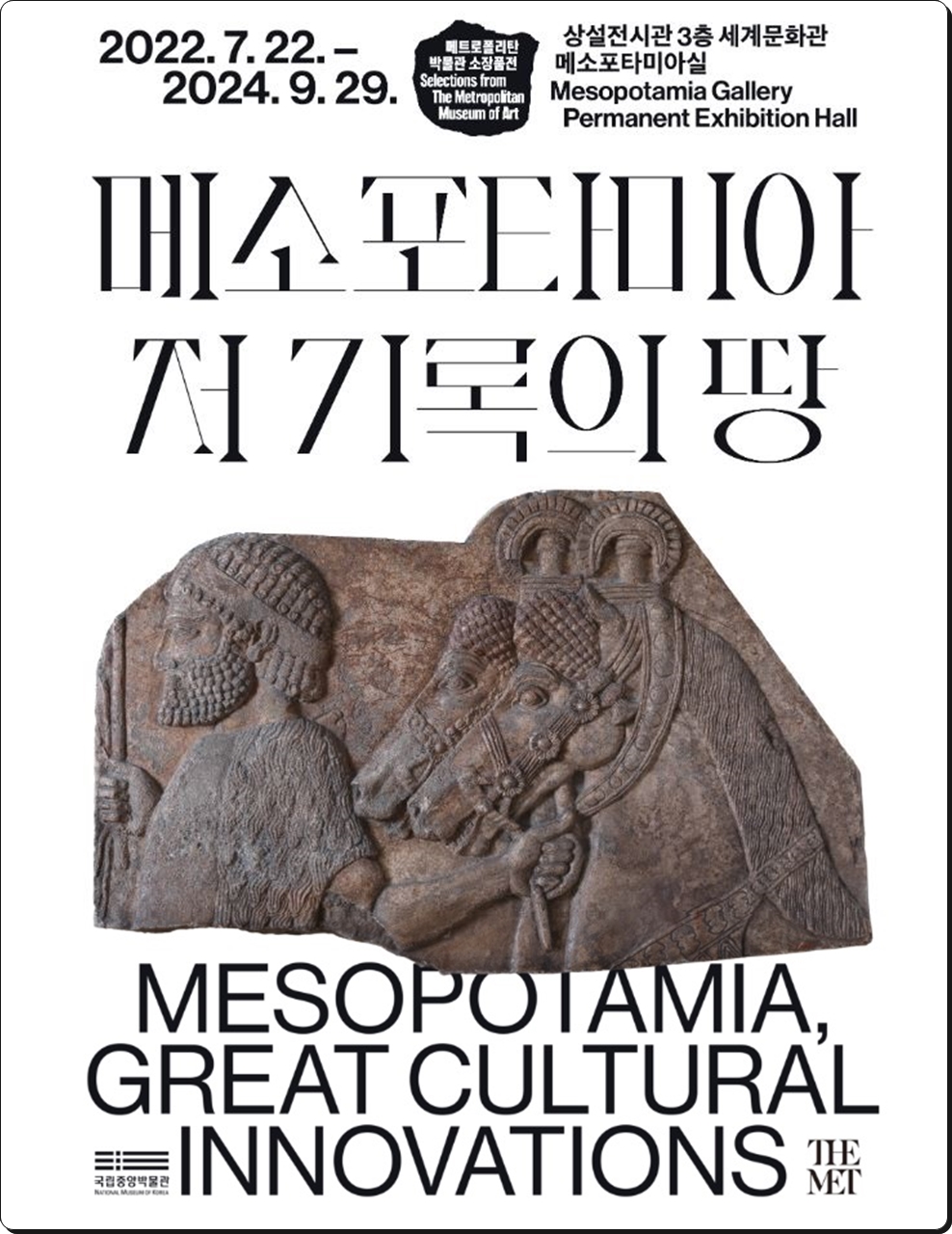 세계문화관 '메소포타미아실'은 미국의 메트로폴리탄박물관과 공동으로 기획하였으며, 2024년 9월 29일까지 운영된다. 이번 전시가 인류 역사에 큰 자취를 남긴 메소포타미아 문명의 문화적 혁신과 뛰어난 기술, 그리고 그들의 삶을 돌아보는 계기가 되기를 바란다.