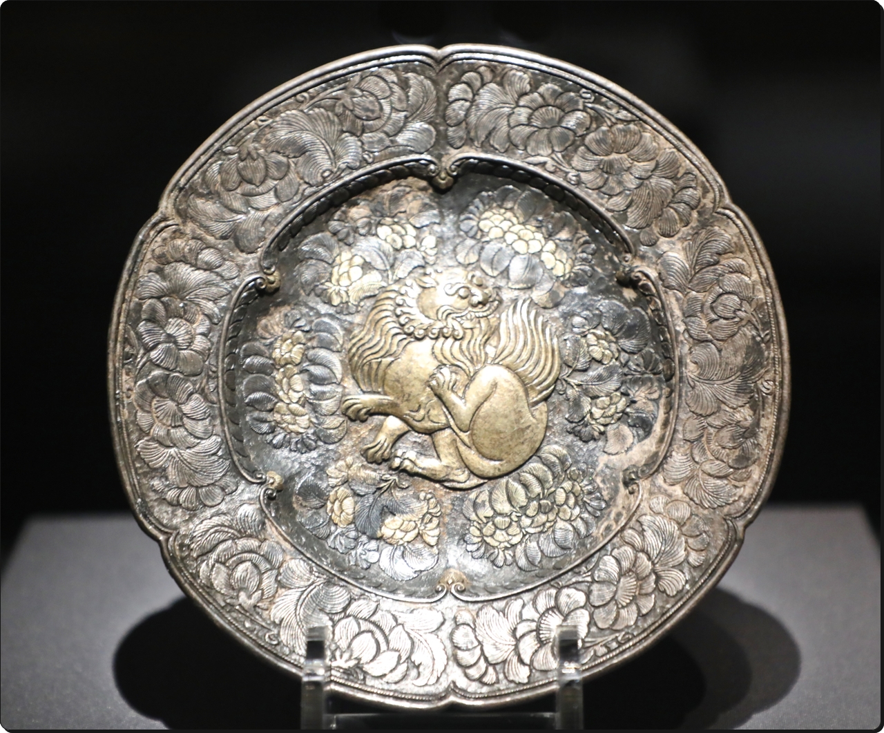 사자 보상화 무늬 은접시 銀製獅子寶華文盤 Silver plate with lion and floral medallion design
