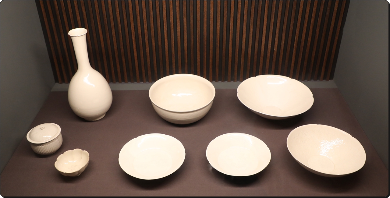정요는 송대 5대 명요名窯의 하나로 지금의 허베이성(河北省) 취양현(曲陽縣) 일대에 있었다. 당대에는 백자만 생산하였으며, 송대에는 백자를 주로 생산하면서 흑유黑釉 갈유褐釉, 녹유綠釉 자기도 생산하였다. 북송 후기에 도장 등으로 무늬를 찍는 인화印花 기법이 등장하여 바탕흙이 마르기 전에 접시나 대접 안쪽에 도구를 이용해 무늬를 찍어 장식하였다.