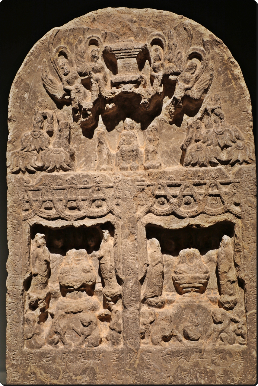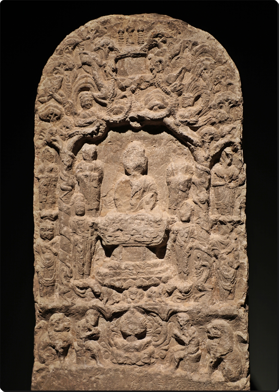 다양한 군상이 빽빽하게 묘사된 북제北齊(550-577년)의 불비상이다. 앞면에는 앉아 있는 불상을 중심으로 나한과 보살, 신장이 주위에 둘러 서 있고 상단에는 꽃줄을 든 천인과 보탑이, 불상 아래에는 향로와 사자, 인물상이 조각되어 있다. 뒷면은 2단으로 된 감실에 오존불과 반가사유상이 새겨져 있다.