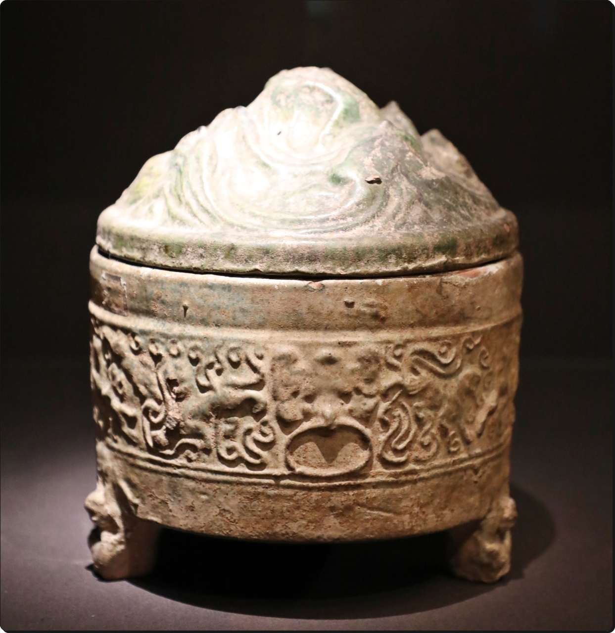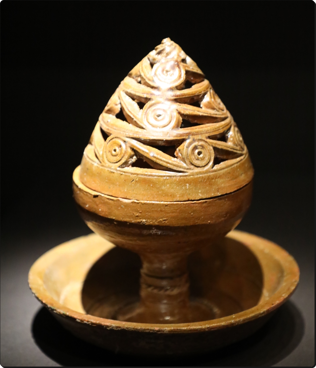 박산향로 博山香爐 Boshan-shaped incense burner Pottery with yellow and brown glaze