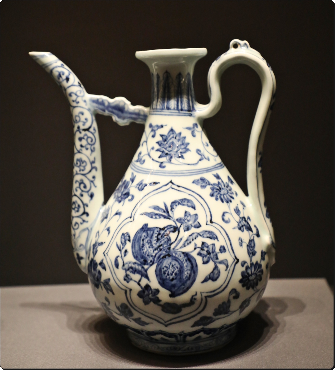 Ewer with floral and fruit design Porcelain painted with cobalt blue under transparent glaze