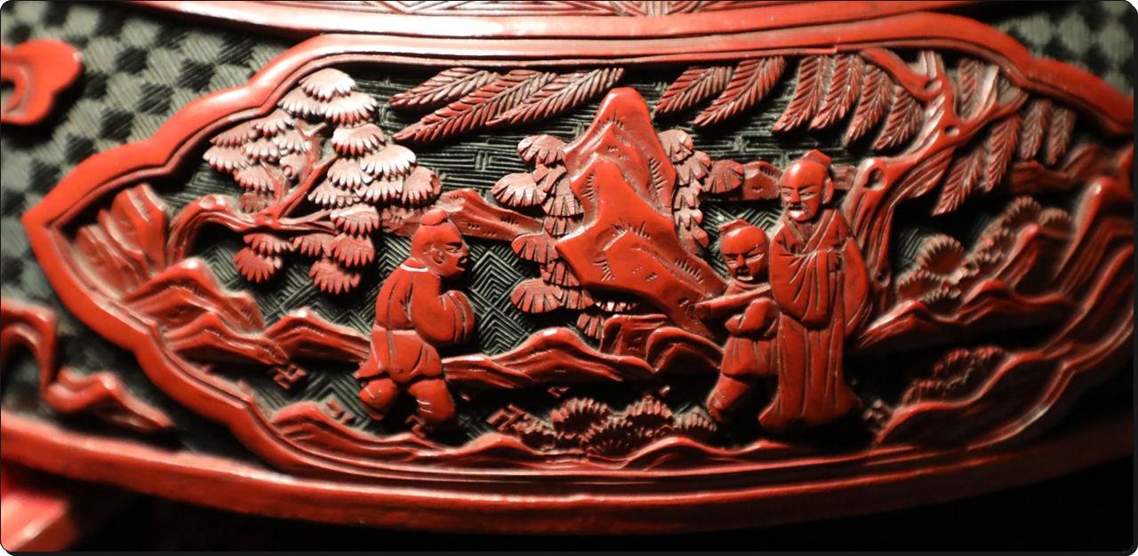 Tray with seven sages in bamboo forest design Carved red lacquer