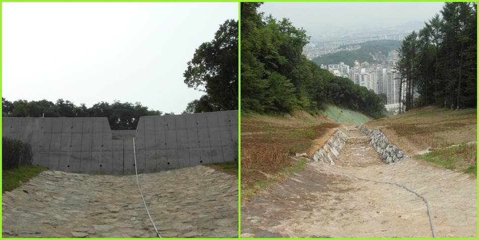 ▼ 작년 폭우에 우면산 산사태로 많은 인명피해를 입었는데, 아직도 공사가 진행중이다